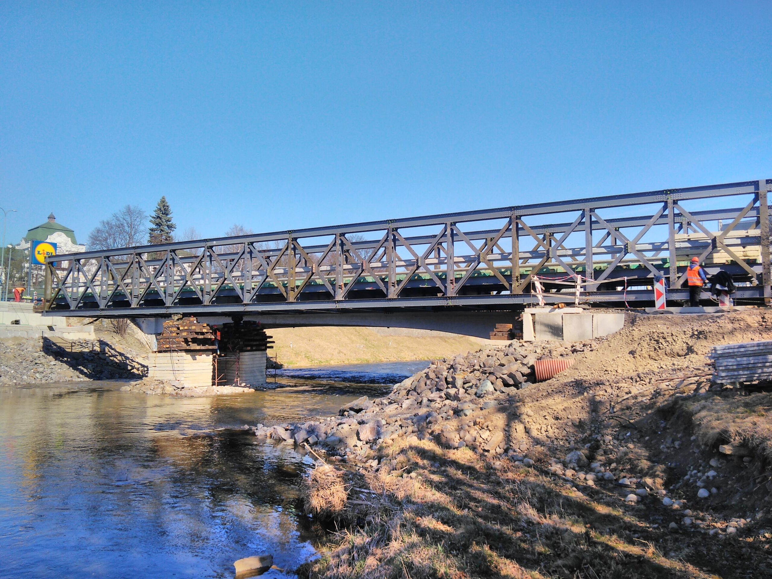 – Realizácia mostnej konštrukcie ŽM-16 –42 m na dvoch pobrežných oporách nad riekou Poprad v meste Kežmarok. Realizácia premostenia v oboch smeroch.